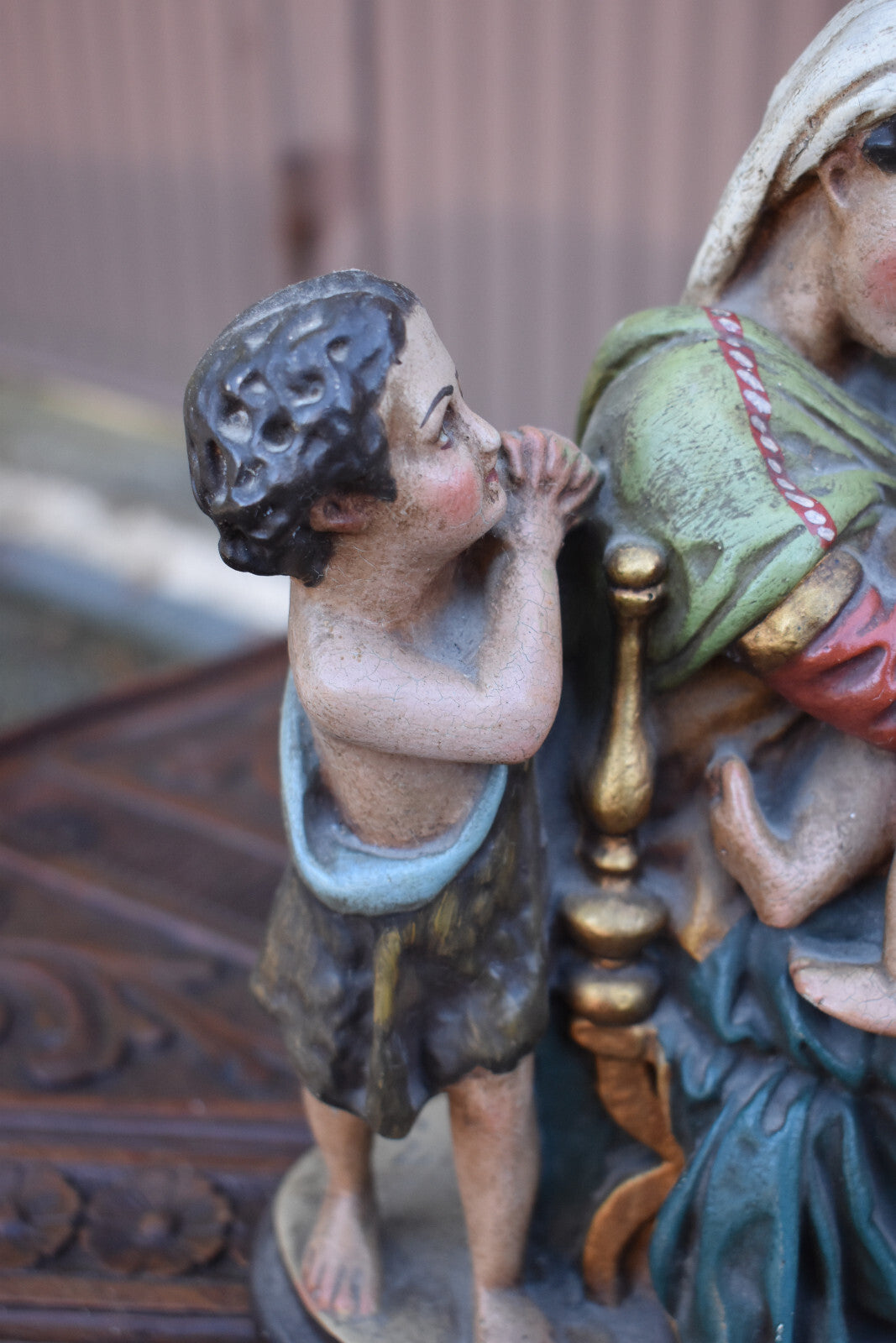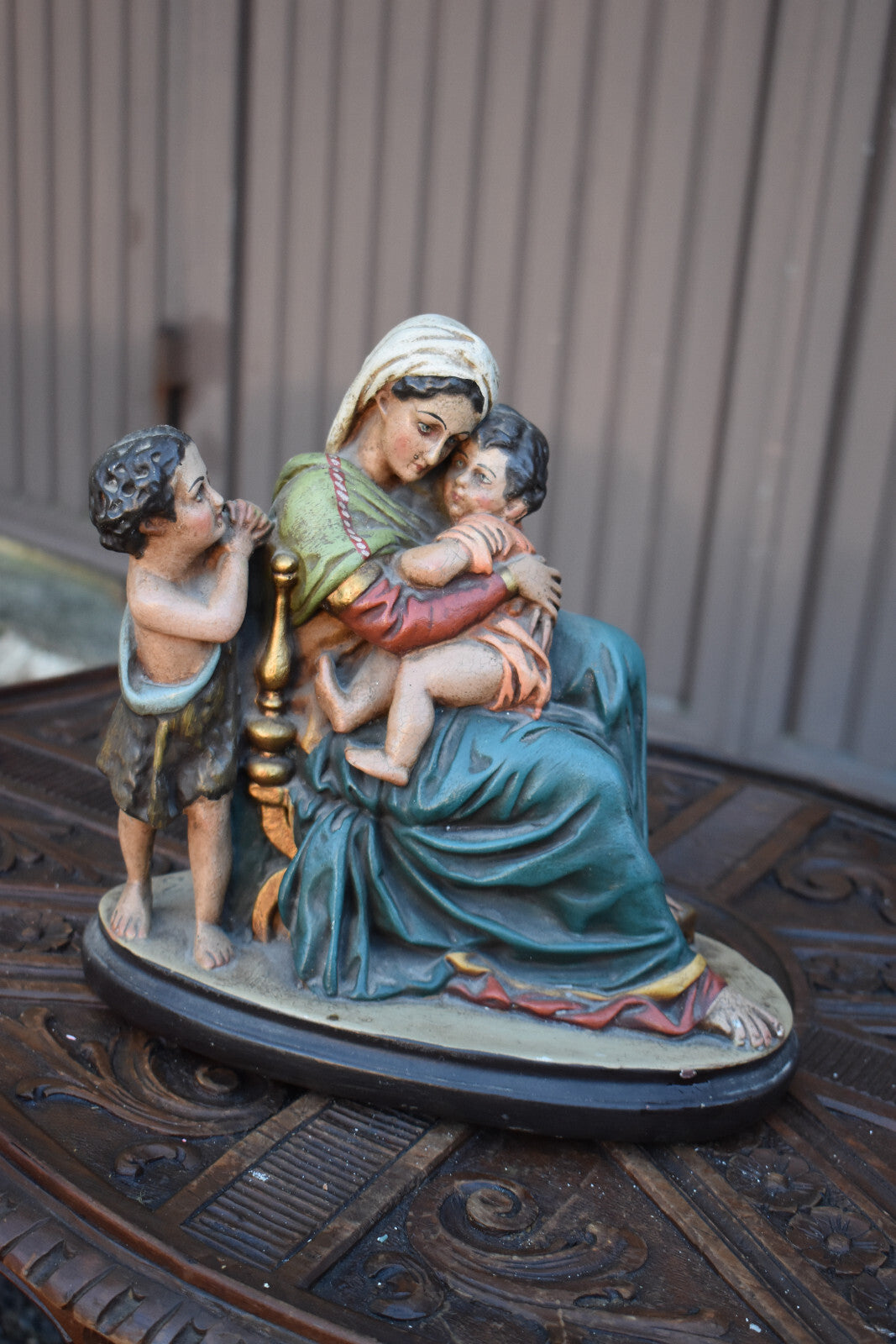 Antique chalk statue madonna young jesus saint john sculpure statue