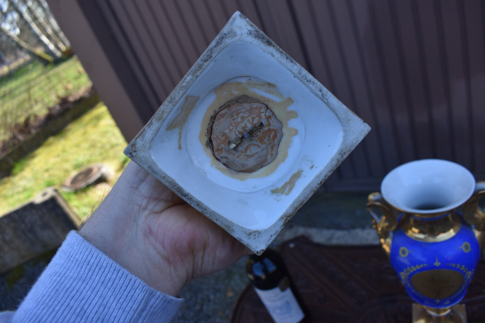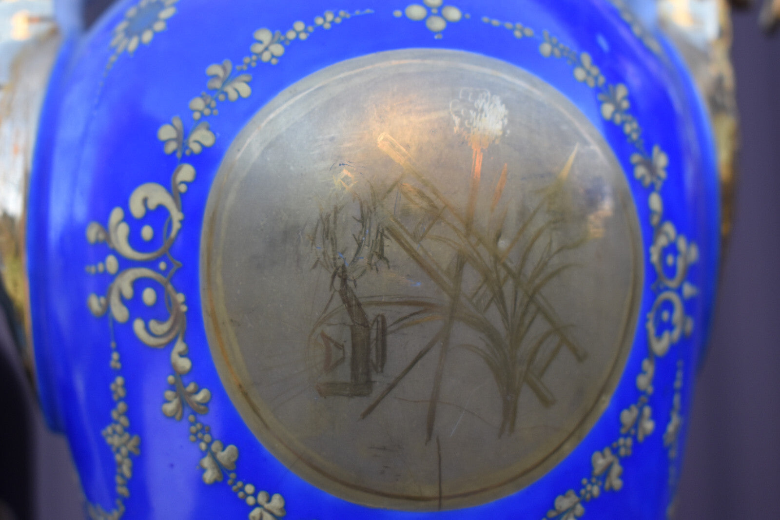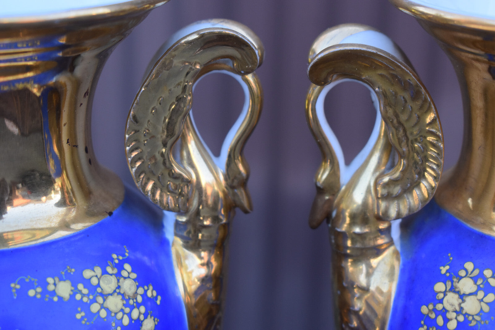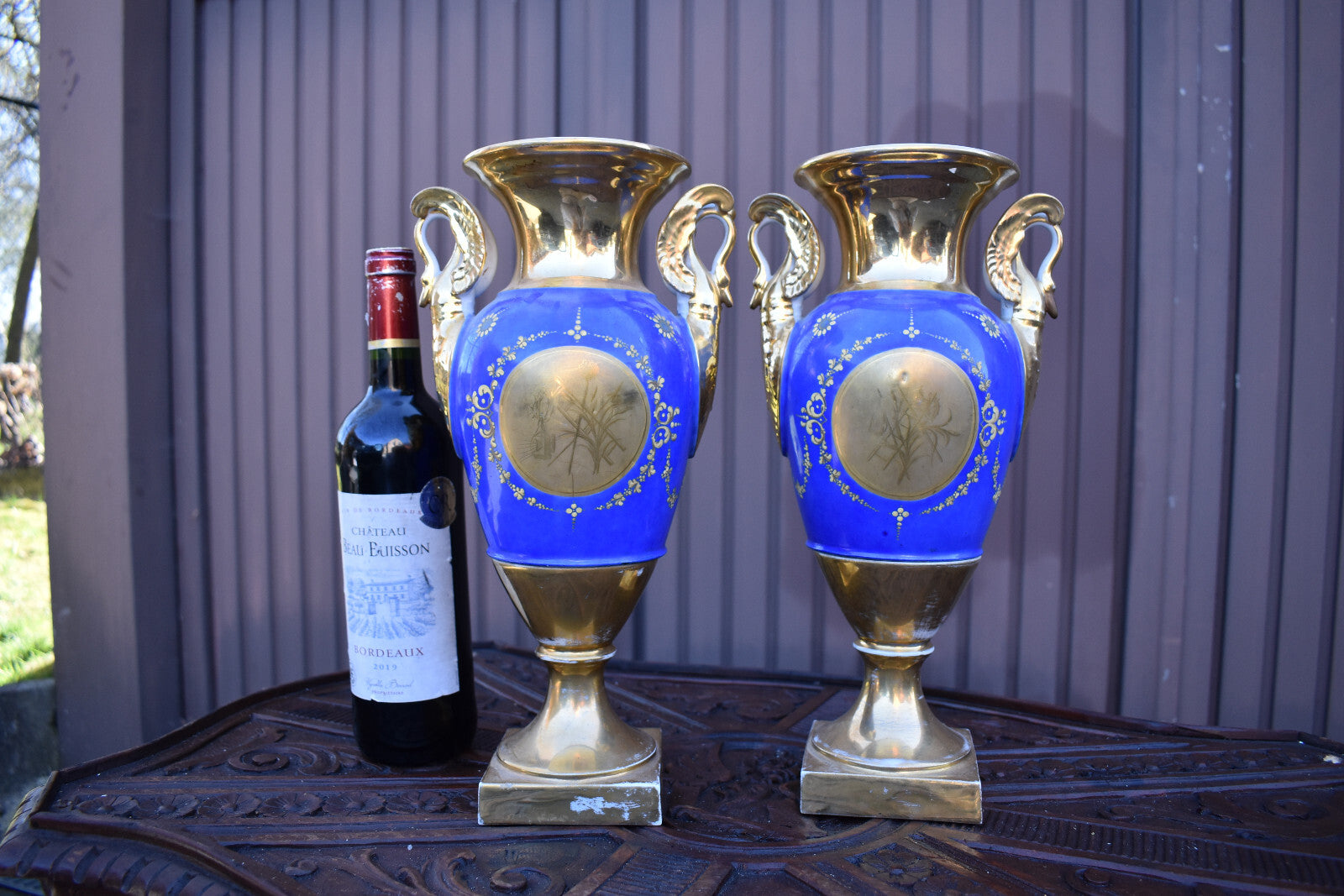 Antique French 19thc vieux paris hand paint jesus mary portrait Vases swans