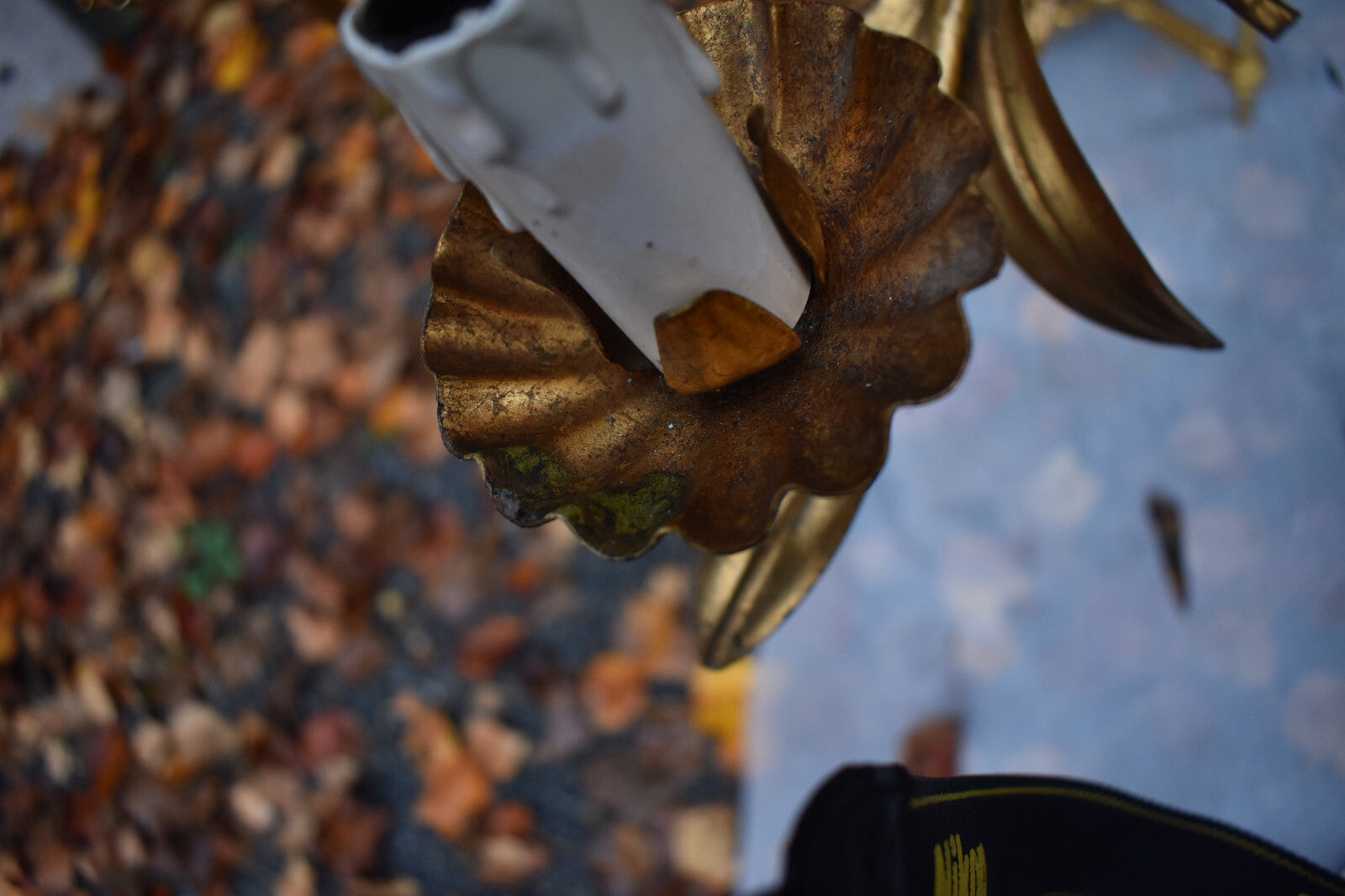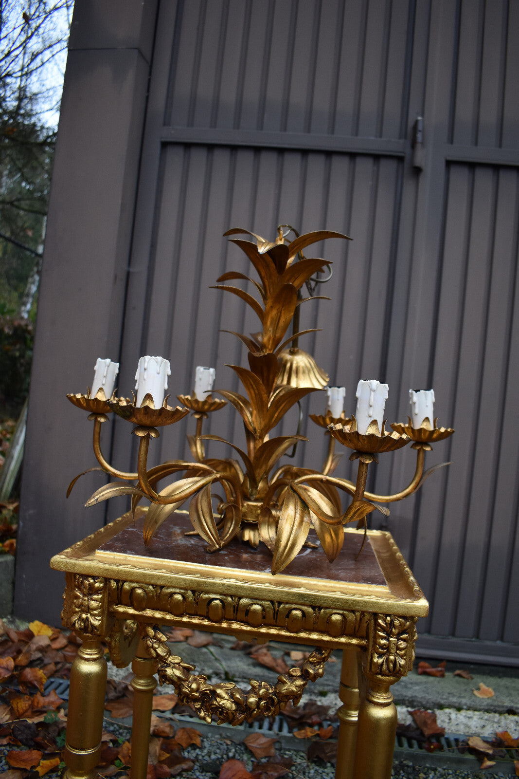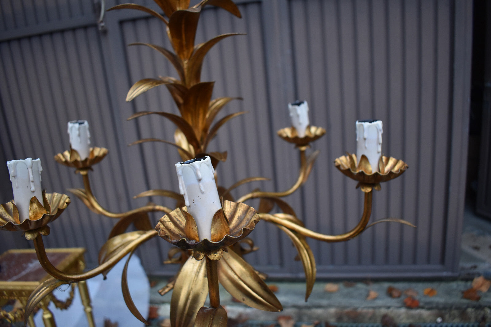 Hollywood regency 1970 metal gold gilt Leaf chandelier lamp