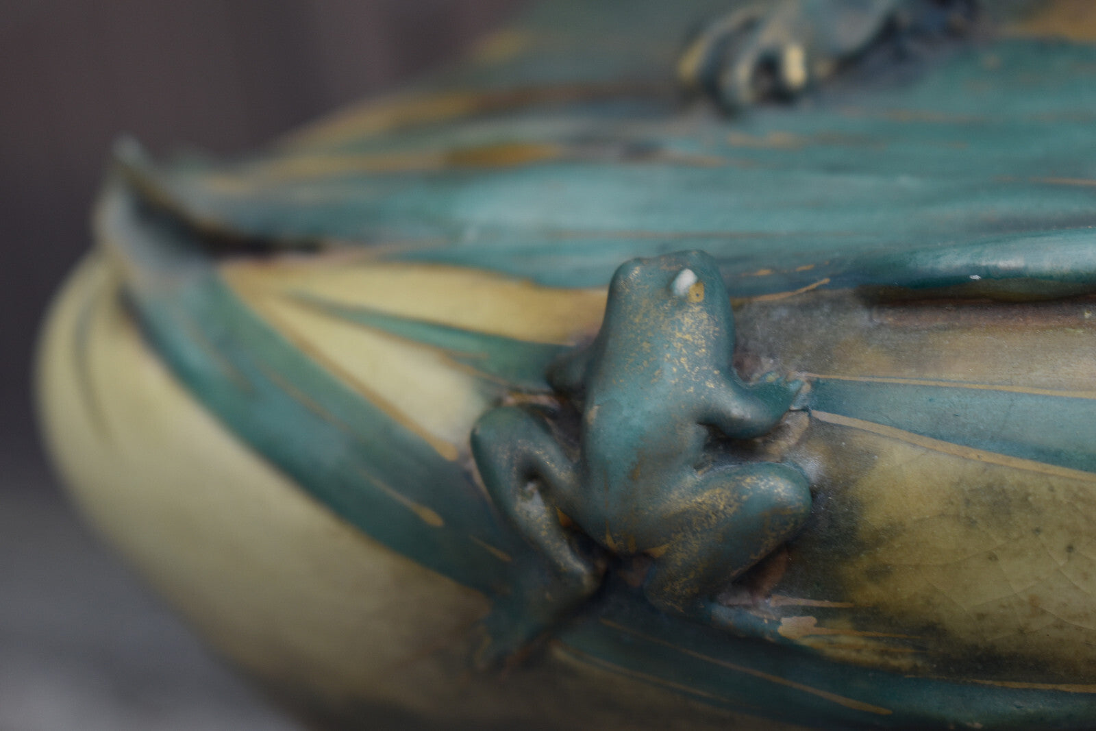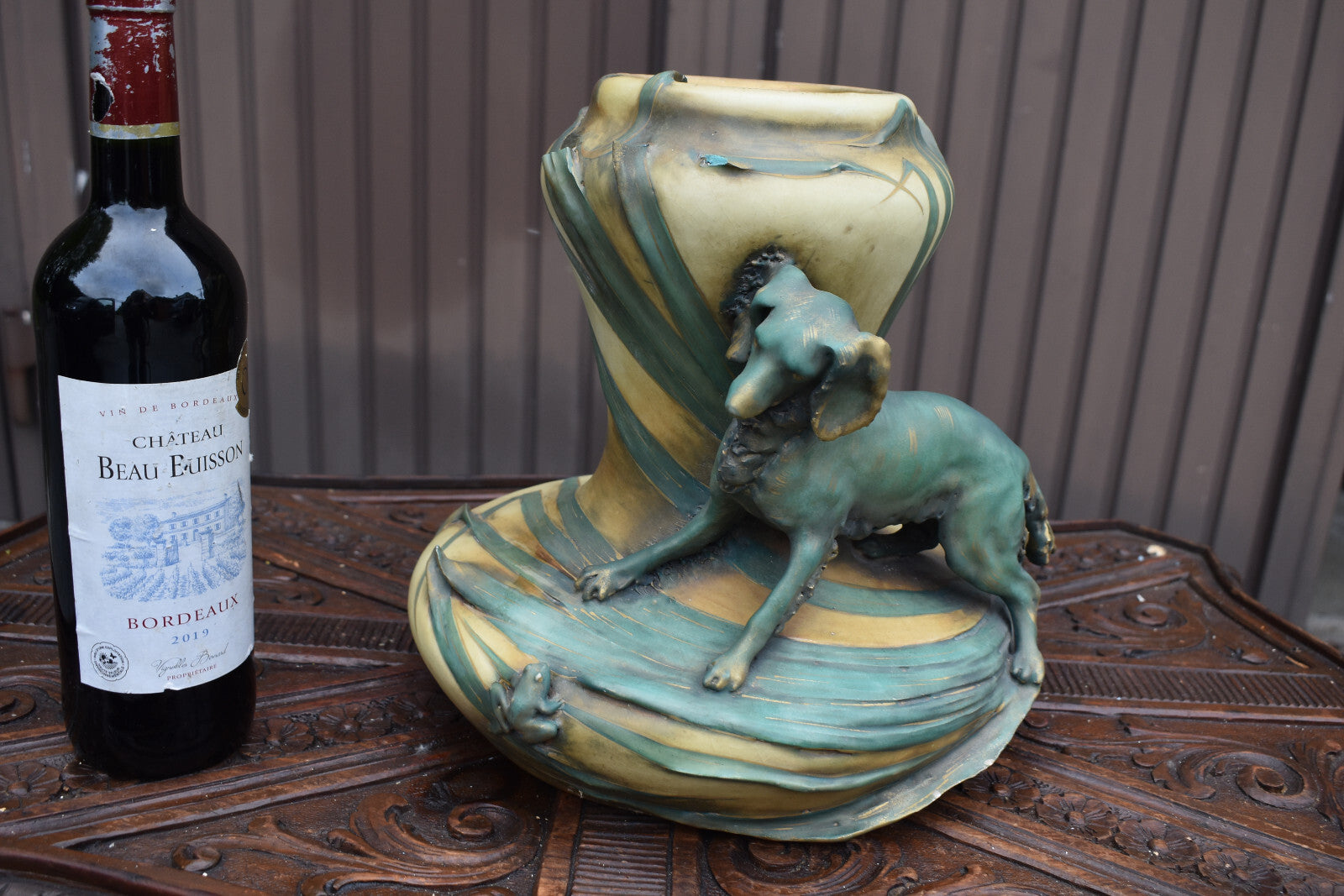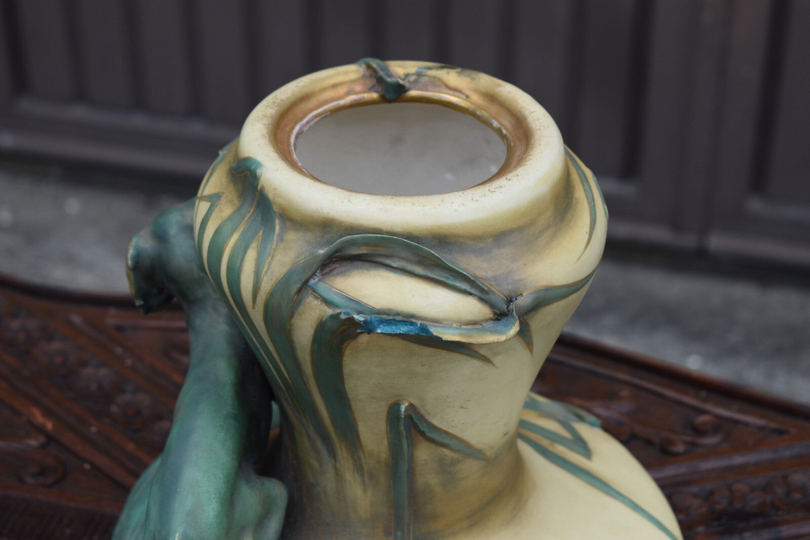 Jugendstil Edouard Stellmacher amphora ceramic vase dog with frog 1900