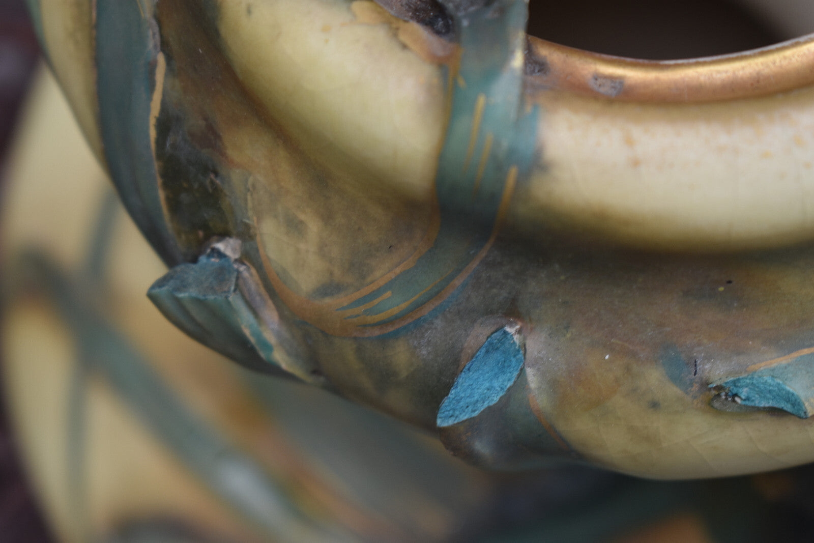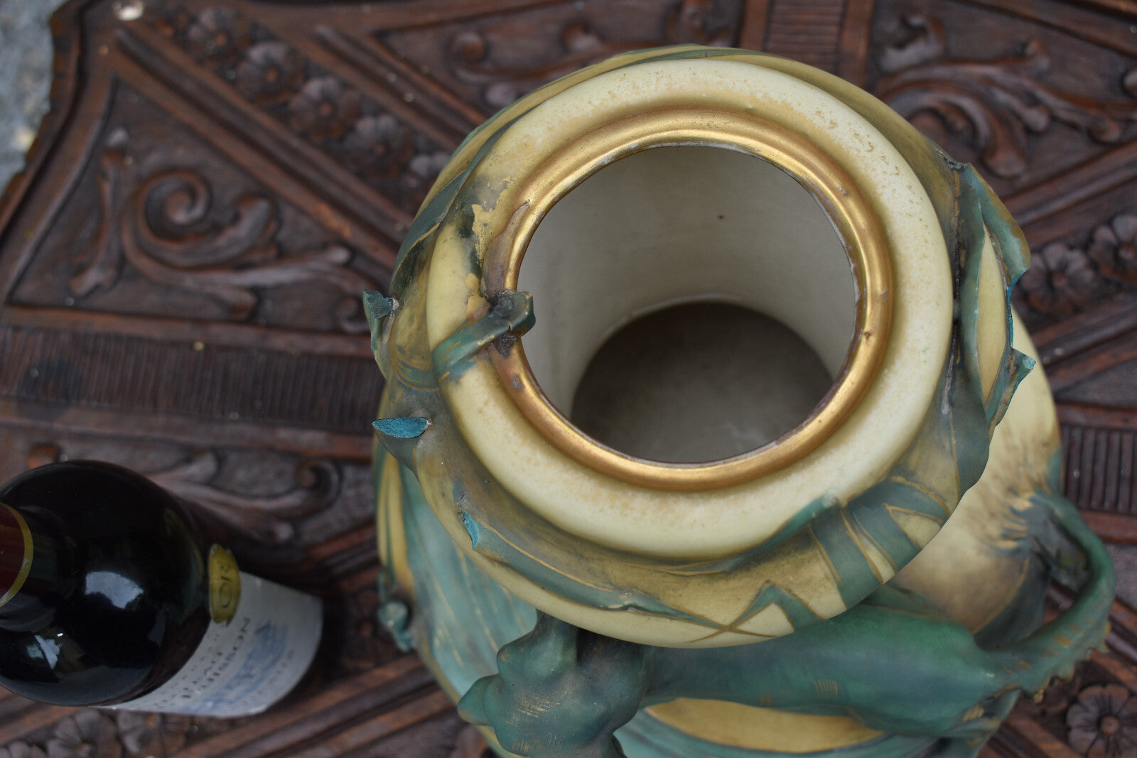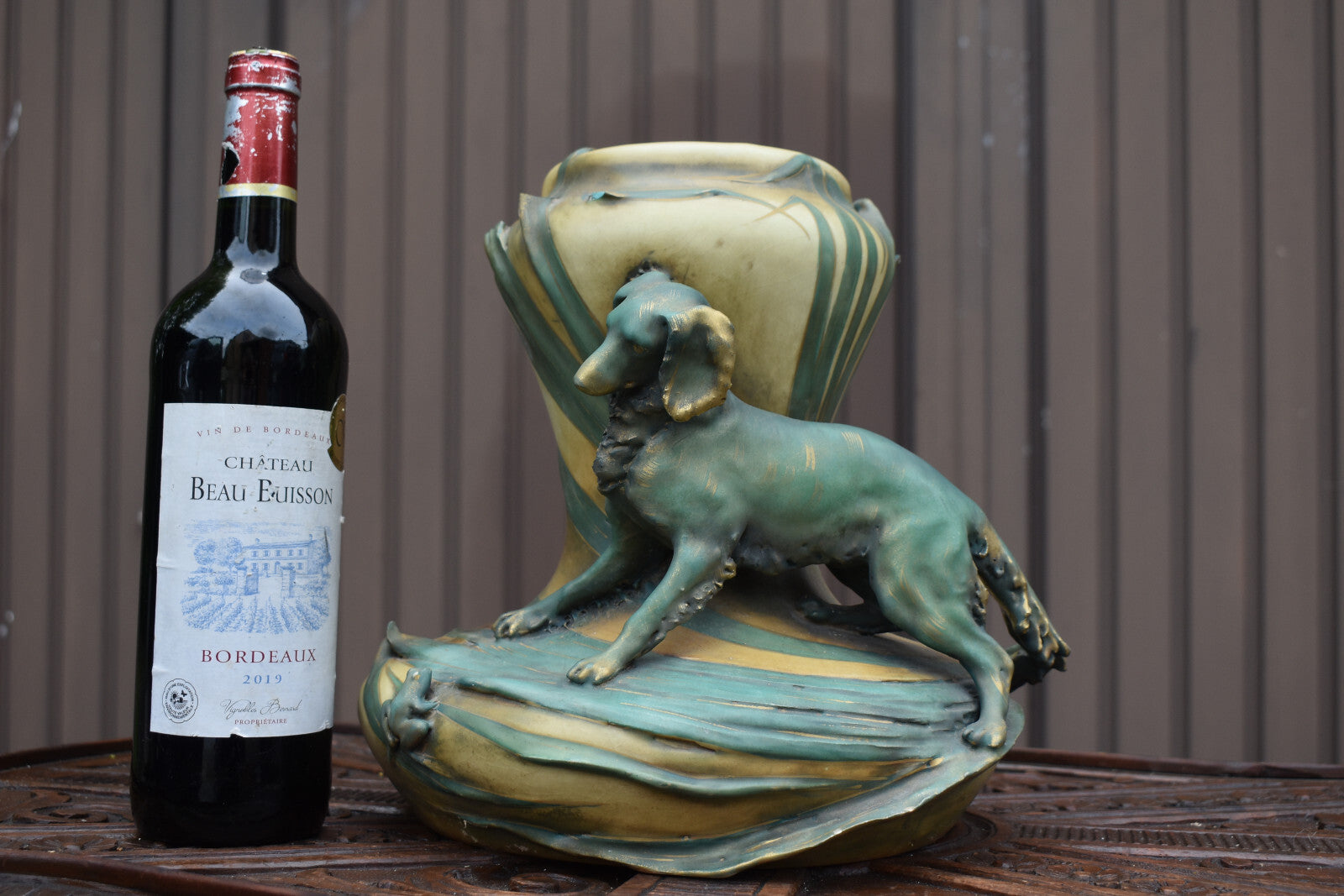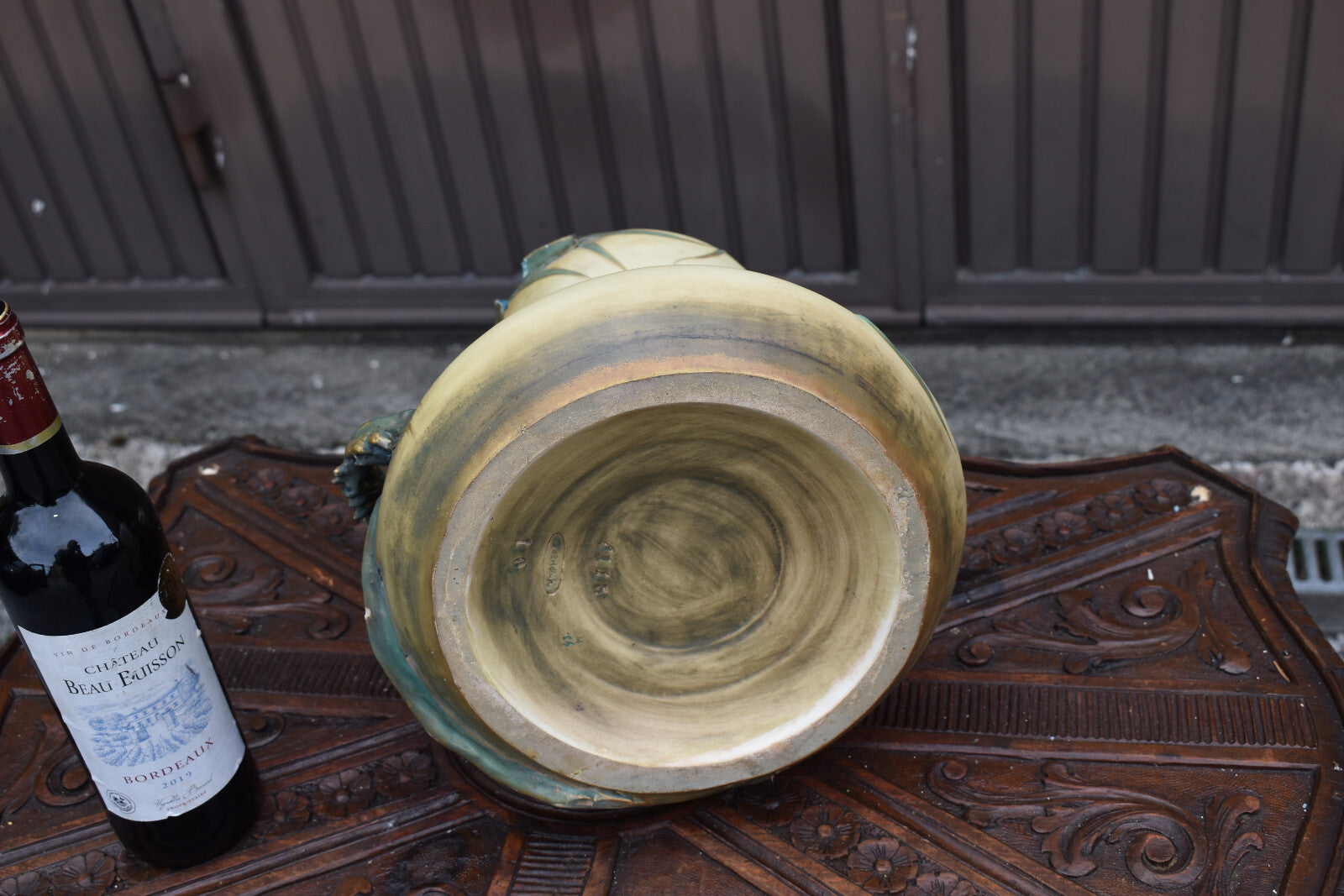 Jugendstil Edouard Stellmacher amphora ceramic vase dog with frog 1900