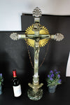 Gorgeous antique French XL Crucifixmarble base decorated with angels putti Spelter metal cross ( some restrenghts been made...