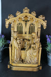 extremely rare to find neo gothic wood carved chapel form with saints i think it are saint anne...