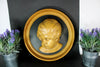 vintage flemish 1950s wood carved wall panelround medaillon form with a cherub putti head coming out in reliefvery...