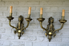 PAIR vintage bronze wall lights sconceswith putti cherub headsheavy large pieces1970sgood condition ( 1 socket is loose but...