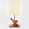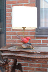 Mid century table lamp with a wood carved nothern cardinal birds on brass base 1970s very gorgeous table...