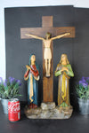 Gorgeous Large antique terracotta & wood cross calvary crucifix very detailed top piece from well known sculptor Johannes...