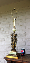 vintage DEKNUDT brass & onyx marble table lampwith 3 goddess figurines/ 3 graces 79 cm total height works!...