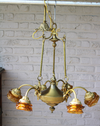 Gorgeous french brass chandelierwith 6 armsamber tulip glass shades ( 1 has a chip see last pic )...