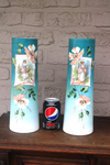 antique pair opaline glass vaseswith portrait lady decor & floral decorvery nice setfrom begin XXthe century34 cm height...