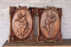 PAIR gorgeous antique french wall panels plaqueswith wood carved putti cherub musician scenes medaillons around velvet and a...