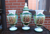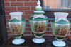 Antique set of 3 opaline glass vaseswith romantic decors1930/1950 period32,5 cm height for side piece and central one...