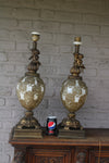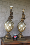 vintage large table lampswith metal cherub putti figurines and glass part in middlevery nice set64 cm height some...