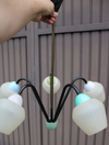 vintage metal gold gilt chandelier design with leaves attr to hans kogl 70 cm total height till canopy...