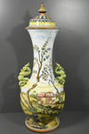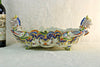 Antique French Fourmaintraux DESVRES ceramic planter jardiniere decorared with dragons on the handles ( 1 is repaired )floral...