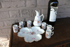 vintage 1970 porcelain liquor /tea setwith cupswith angels cherub decorcups 4,5 cm height and tea pot 13,5 cm...