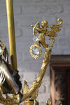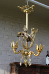 Rare unique vintage bronze lamp chandelier from 1960swith a fairy figurine and cupido figural decorwith 3 armsglass drops...