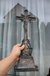 Antique zinc metal crucifix46 x 16 cm 1930ssome wear finish
