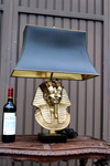 Eye-catching lamp with brass pharaoh sculpturedesigned by Maison Jansen for Deknudt in Belgium around 1970 This stunning piece is...