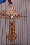 antique french wood cut wall crucifixmetal christ corpusvery beautiful piece49 x 27 cm 1950