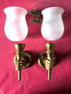 PAIR mid century brass hand form wall lightsdesign attr maison jansen with opaline glass shades ( size is...