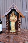 antique wood chapel inside a ceramic chalk madonnasigned guelfislight wear finish46,5 cm height and 33,5 cm wide, statue...