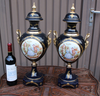pair antique rare to find miniature vasessevres hand paint porcelain middle parts and cloisonne enamel inlay decor in...