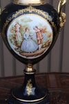 pair vintage cobalt blue limoges decor porcelainvases with satyr handles sides romantic decormarked56 cm height and 23 cm...