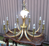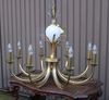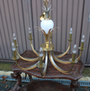 Beautiful, eye-catching pineapple leaf chandelier made from brass and chrome with eight lightpoints and an opaline center piece This...