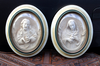 pair antique 19thc Meerschaum portrait of sacred heart jesus and mary behind convex glassmatching set32 x 25,5 cm...
