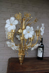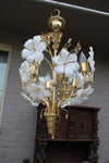 Italian brass chandelier with Murano glass flowers and crystal and brass butterfly.Design from 1970sgood conditionis for e14 bulbs...