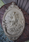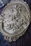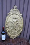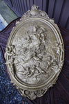 antique rare to find XL ceramic wall plaquettewith romantic relief scene with angels / nymph lady 68 x...