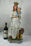Gorgeous antique chalkware statue With our mary of Flanderswith next to her the symbol of flanders region, the...