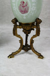 Gorgeous top antique lamp with bronze caryatid figurines base and celadon faience middle part with putti cherubs portraitsvery...
