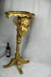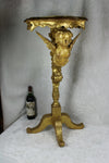 A gorgeous antique italian wood carved gold gilt standing wall console table 1930s with a cherub winged putti...