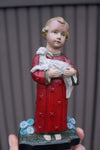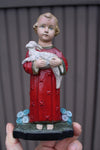 antique ceramic chalk statue of a young jesus boy with lamb19 cm height1950s