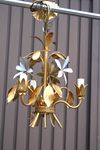 Vintage 1970s Hollywood regency chandelier lampmetal gold giltwhite enamal flowers ( 1 has some leaf gone see last...