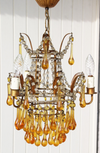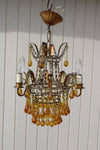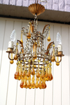 gorgeous vintage chandelier 1970smetal frame and murano amber coloured glass dropsvery beautifulyou can place 3 e14 bulbs in...