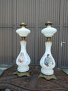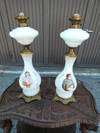 Vintage pair 1970s napoleon & josephine portrait oil lamps opaline white glass 57 cm height WORLDWIDE SHIPPING...