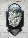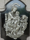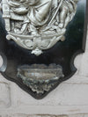 antique french holy water font plaquefor wall hangingwith metal relief scene madonna with jesus and john baptist36,5 x...