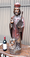 Gorgeous antique wood carved French SAINT NICHOLAS with childrenrare to find religious church statue19thc92 x 28 cm came...