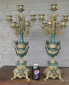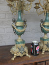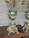 gorgeous vintage XL Bronze & marble candelabras set with putti bronze figurines on the sides lion paws green...