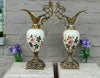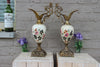 gorgeous set from france1950sFaience with floral decors spelter handles with birds on top 43 cm height and 20...