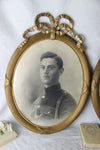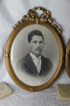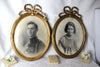 PAIR antique Flemish portrait pencil drawings of ancestors 1920's in a gold gild stuc ( chalkware ) bow...