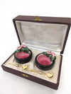 Very original vintage french pair of salt / pepper Bowls with gold gilt spoon condiment set in its...