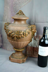 Antique FRENCH VASE Plaster very detailed with satyr heads signed by maker 42cm high and 29cm wide Payment: ...