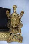 TOP PIECE From France Antique fireplace pair andirons set with screen very gorgeous piece with bronze gold gilt...