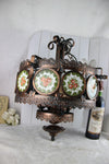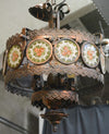 Gorgeous French Chandelier Metal with bronze patina over it 12 porcelain faience floral plaques around it 4 lights...