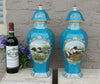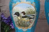 rare PAIR French limoges porcelain vasesin turquoise blue colour both liddedwith duck hand paint animal scenes front and...