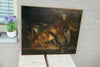 Gorgeous oil on canvas painting Still life hunting trophy on a table with a rabbit and a partridge...